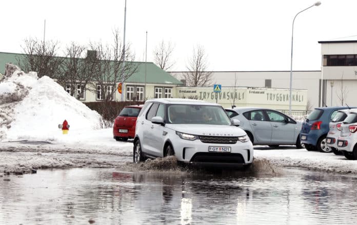 Fólk er hvatt til að sýna aðgát og mikilvægt er að hreinsa frá niðurföllum til að forðast vatnstjón vegna rigningar og leysingavatns.