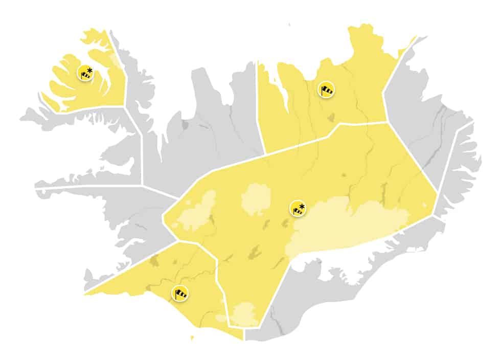 Veðurstofan hefur gefið út gula viðvörun sem gildir frá klukkan 12 á hádegi í dag og til kl. 22 í kvöld.