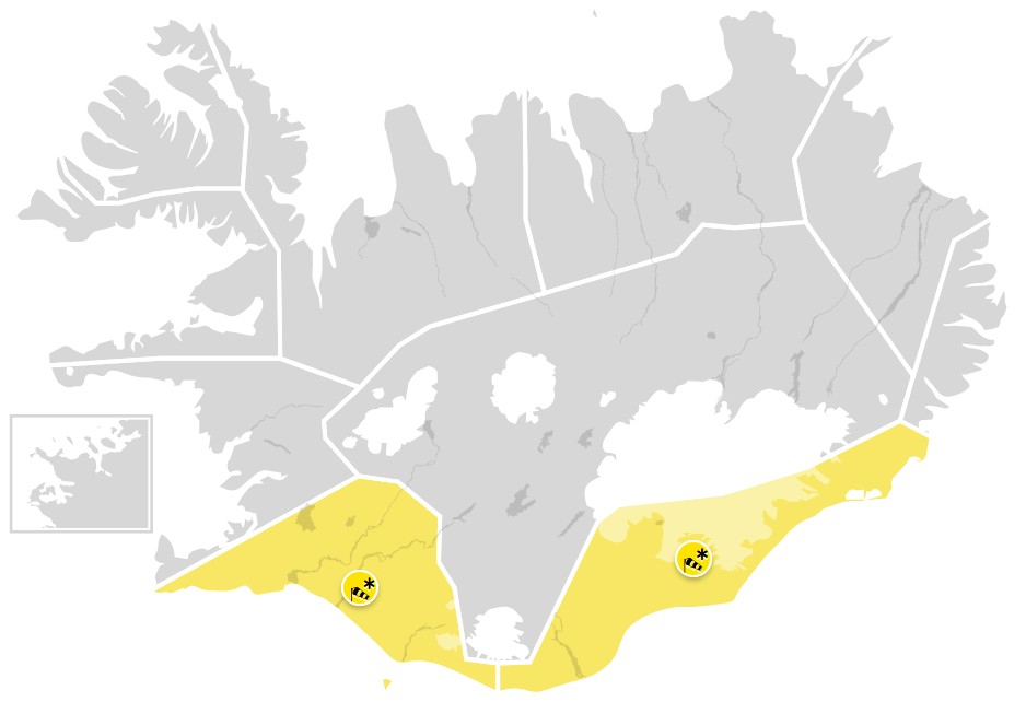 Á Suðausturlandi gildir viðvörunin frá klukkan 18 í kvöld til klukkan 15 á morgun. Þar verður snjókoma og slæmt skyggni, einkum vestantil á svæðinu og austur að Breiðamerkursandi.
