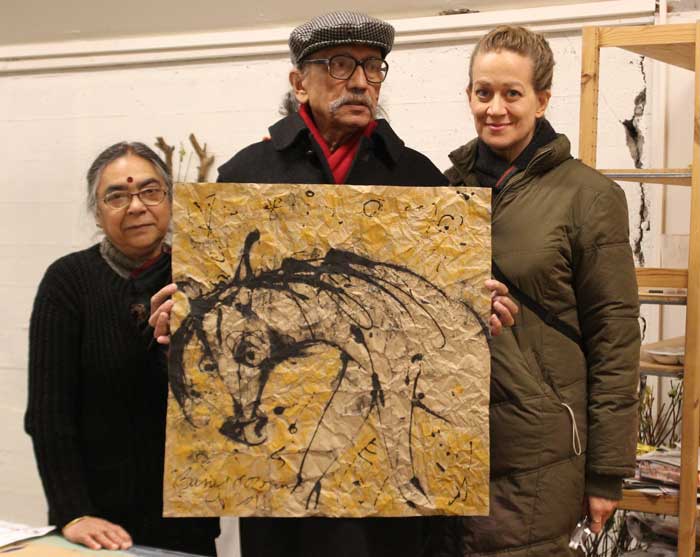 Indverski listamaðurinn Baniprosonno dvaldi í Gullkistunni í Laugardal á dögunum en áður en hann yfirgaf landið gaf hann Gullkistunni 45 listaverk eftir sig.