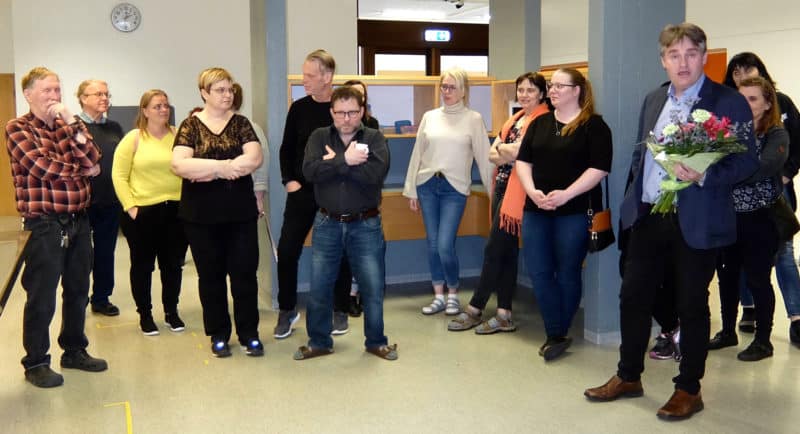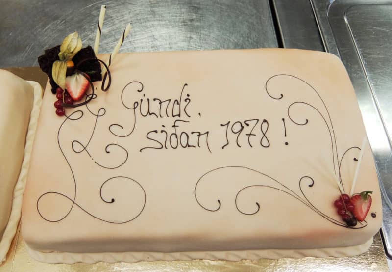 Gúndi hefur unnið í 41 ár undir sama þaki en hann hóf störf í þáverandi Gagnfræðaskóla Selfoss árið 1978, þegar Guðbjartur Ólason, núverandi skólastjóri Vallaskóla, var 9 ára gamall. Guðbjartur kvaddi Gúnda í dag fyrir hönd starfsfólks og fjölmenni var í kveðjukaffinu og tertan góð.