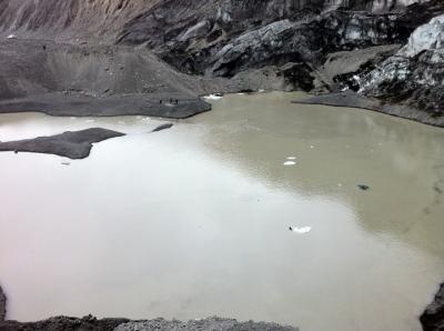 „Ef menn fara fram á bakka „nýja lónsins“ og falla í vatnið þá er glæra ís neðan við vatnsborðið. Litlar líkur er á því að maður nái að krafla sig upp úr slíku nema vopnaður broddum og ísöxi. Menn eru venjulega ekki vopnaðir slíku,“ segir í tilkynningu frá lögreglunni.