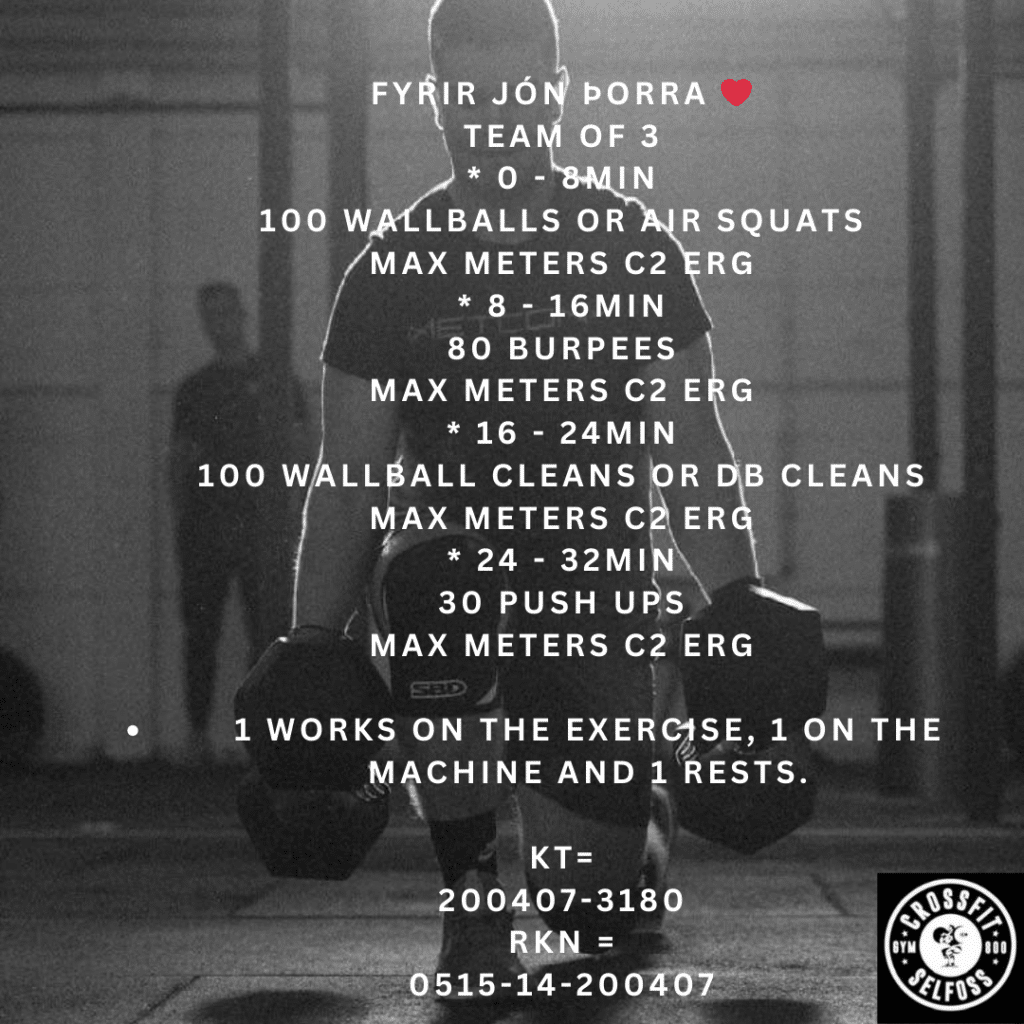 Sigrún segir að þeir sem hafa ekki tök á að mæta í CrossFit Selfoss á morgun, til dæmis þeir sem búa erlendis, en vilja samt vera með í æfingunni geta samt sem áður verið með. „Við erum búin að birta æfinguna með öllum upplýsingum þar sem fólk getur bæði æft og lagt inn upphæð á Jón Þorra.“