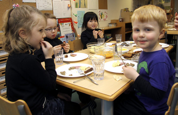 Krakkarnir tóku hraustlega til matar síns og var ýmislegt góðgæti á boðstólunum, þó að það hafi runnið misvel niður. Allir voru sammála um að harðfiskurinn væri bestur en hákarlinn var ekki allra.