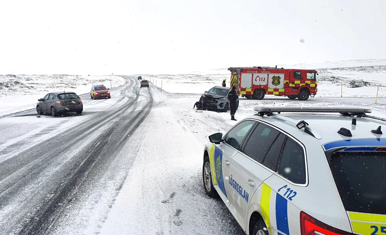 Fjórir ferðamenn voru í öðrum bílnum, sem var ekið í veg fyrir fólksbíl sem ók eftir Þrengslavegi, við afleggjarann að Raufarhólshelli. Ökumaðurinn var einn á ferð í hinum bílnum.