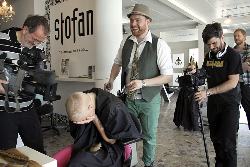 Erna í viðtali við Ísland í dag áður en fyrsti lokkurinn var klipptur.