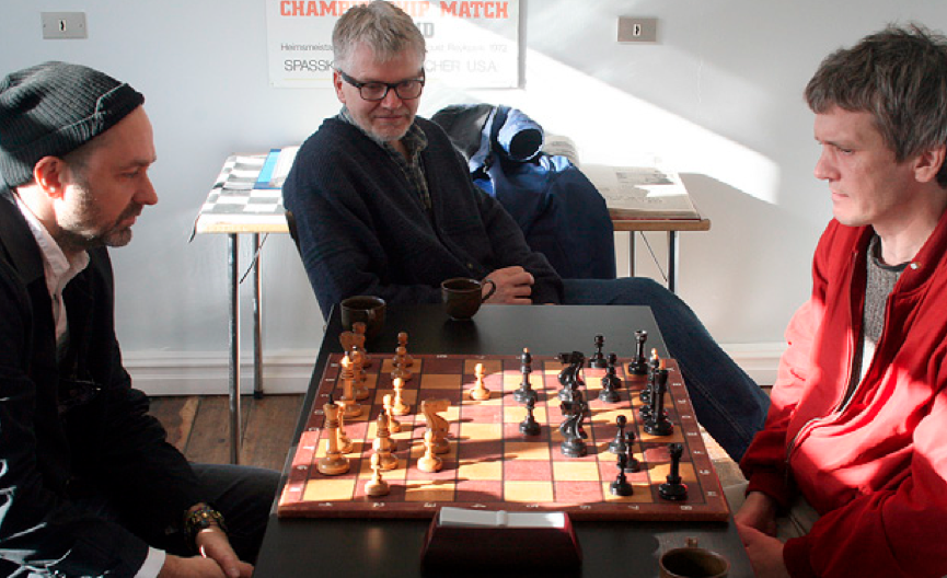 Leikstjórinn er forfallinn skákáhugamaður og vildi svo til að á sama tíma og hópurinn heimsóti Fischersetrið var Skákskóli Íslands að kenna um 25 grunnskólabörnum skáklistina.