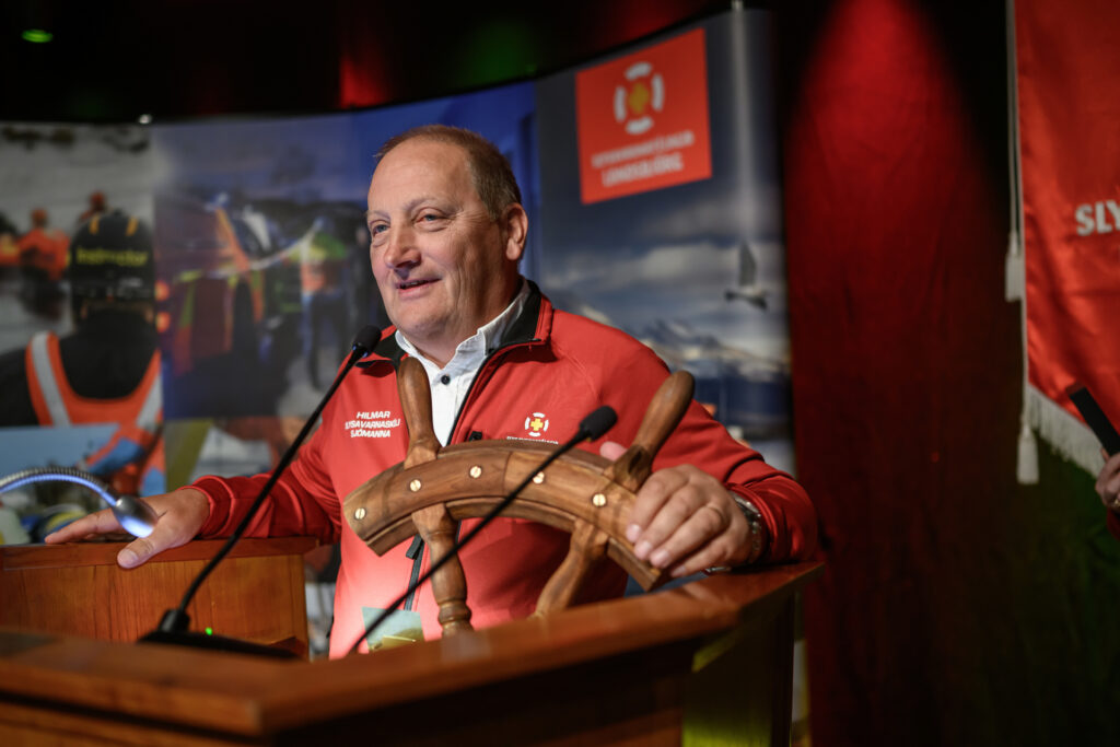 Borghildur Fjóla Kristjánsdóttir formaður félagsins afhenti Hilmari hluta úr stýri Sæbjargar, skólaskips Slysavarnafélagsins Landsbjargar sem sett hefur verið á kopar platta og með fylgir skjal þar sem segir: