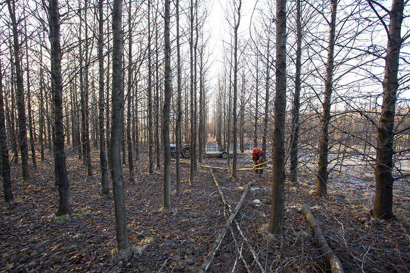 Til gamans má geta að annar grisjaranna, Hrafn Óskarsson, vann einnig að gróðursetningu trjánna fyrir 23 árum síðan. Reiturinn í Kollabæ er aðeins 0,35 ha að stærð og úr grisjuninni komu 45-50 rúmmetrar viðar sem voru nýttir til arinviðargerðar. Eftir standa 350 tré sem munu á næstu árum heldur bæta í vöxtinn sér í lagi þvermálsvöxtinn þegar þau fá meira rými.