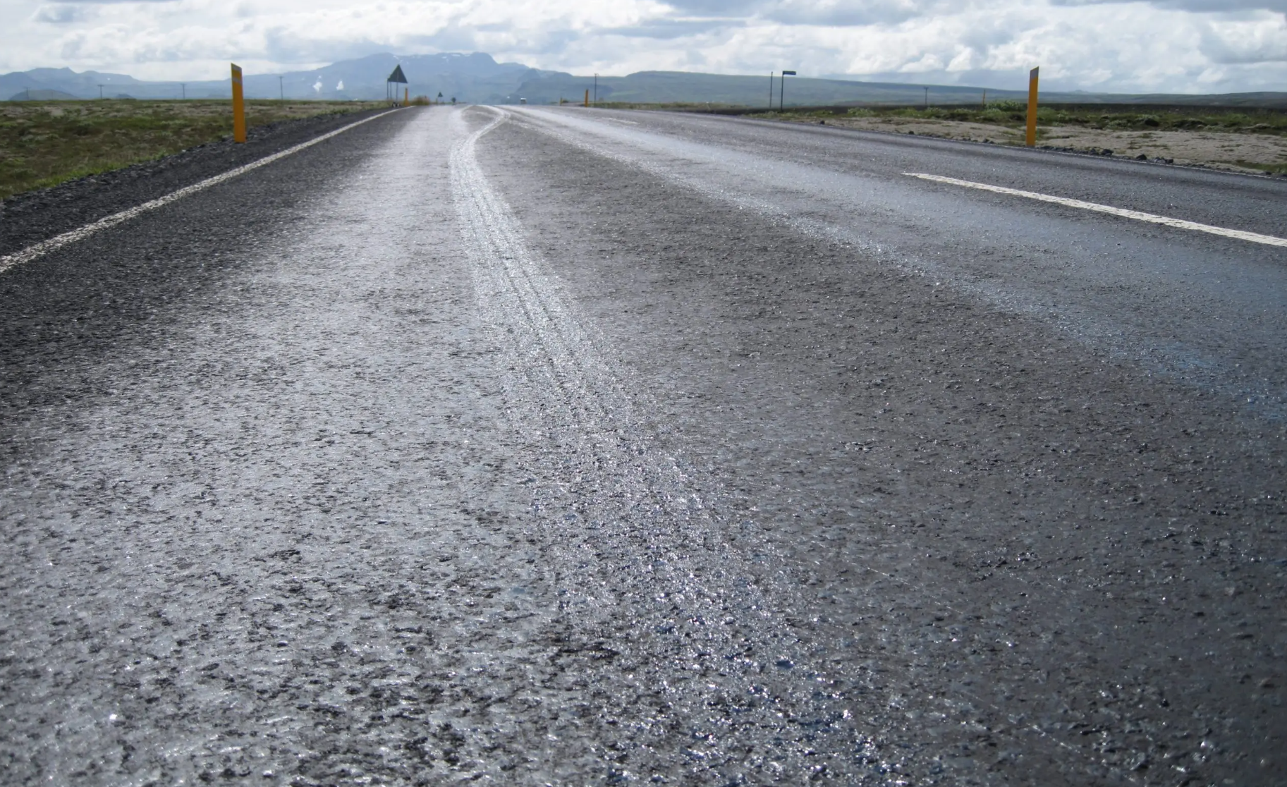 Í aðstæðum sem þessum geta bik og möl festst á hjólbörðum og myndast hálka á veginum. Vegfarendur eru beðnir um að aka með gát og sýna tillitssemi.