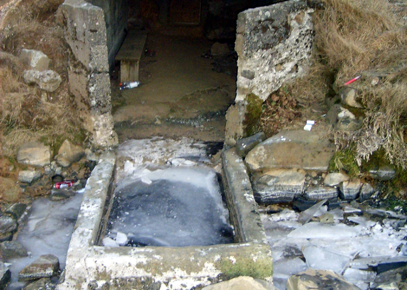 Helena Eiríksdóttir frá Ási sendi sunnlenska.is tvær myndir sem sjá má í myndasafni hér til hægri. Eiríkur Steindórsson, bóndi í Ási, segir ekki vitað til þess að laugin hafi frosið áður. Nú seytlar svolítið volgt vatn í efri laugina en það nær ekki að renna inn í kofann svo að laugin hefur frosið.