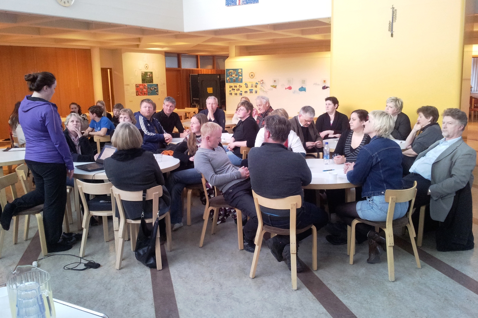 Um þrjátíu manns mættu á fundinn og var hópnum skipt á fimm borð sem öll fjölluðu um sömu lykispurningarnar. Var greinilegt á hlátrasköllum og orðaskiptum að fólk skemmti sér hið besta. Á fundinn mætti hópur ungmenna frá félagsmiðstöðinni sem tók virkan þátt í fundinum og kom með fjölmargar gagnlegar ábendingar.