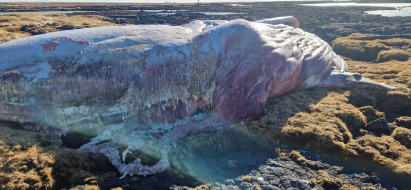 Hvalrekar eru á borði Umhverfisstofnunar og þar er meginreglan sú að hræið fái að liggja og náttúran að hafa sinn gang, nema hræið valdi sérstökum ama, til dæmis vegna ólyktar.