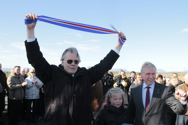 Bræðratunguvegur og ný brú yfir Hvítá var formlega opnuð í dag er Ögmundur Jónasson innanríkisráðherra ásamt Hreini Haraldssyni vegamálastjóra klippti á borða.