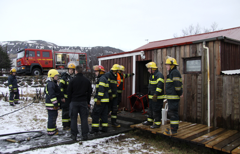 Enginn eldur var því í húsinu þegar Slökkvilið Hveragerðis mætti á vettvang laust eftir klukkan 18 en liðsmenn þess reykræstu húsið.