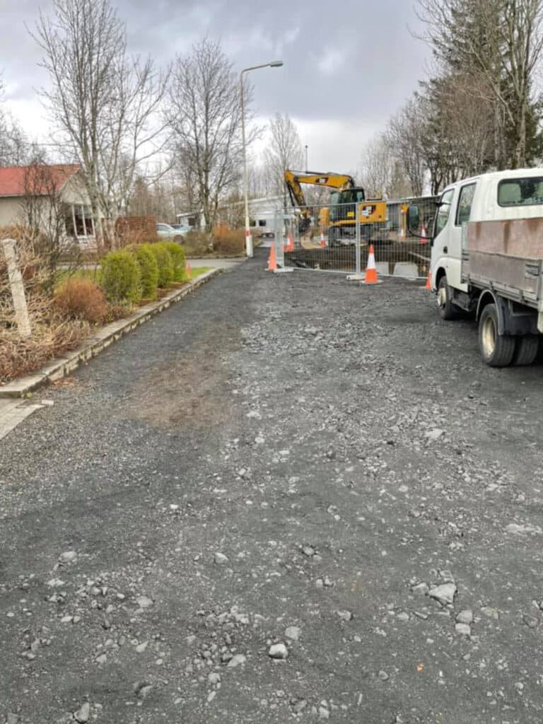 Annars má bæta því við að endurbótum á Lyngheiðinni átti að vera lokið þann 1. október í fyrra en verkið hefur tafist mikið þar sem klöpp er undir götunni sem hefur torveldað vinnu verktakans mikið.