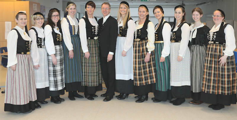 Unglingastigskennarar í Sunnulækjarskóla mættu prúðbúnir til vinnu og buðu samstarfsfólki upp á engjakaffi að íslenzkum sið. M.a. var boðið upp á lummur, pönnukökur, kleinur, hjónabandssælu og mjólk, beint frá býli.