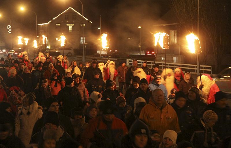 Grýla og hennar hyski fór fyrir blysförinni og jólasveinarnir sáu um að tendra eld í brennunni. Botninn var svo sleginn í dagskrána með stórkostlegri flugeldasýningu.