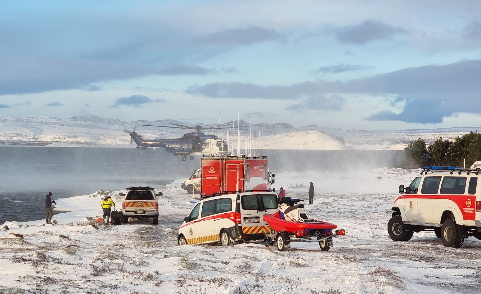 Leitarflokkar Slysavarnarfélagsins Landsbjargar hófu leit við Þingvallavatn í morgun. Þá hafði verið leitað úr lofti með drónum, með leitarhundum, með gönguhópum og af bátum á vatninu frá því í birtingu. Um 50-70 manns koma að leitinni í dag en auk þess er notaður sónarkafbátur og þyrla Landhelgisgæslunnar hefur tekið þátt í leitinni.