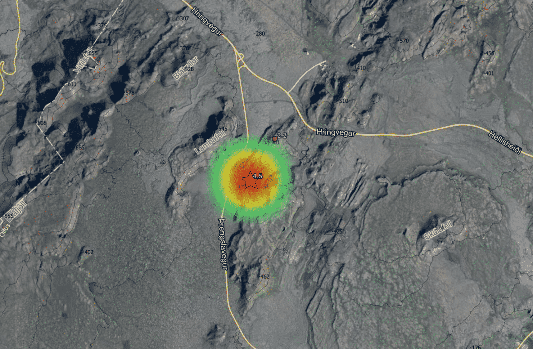 Í vikunni hefur verið mikil virkni austar á Reykjanesskaga og mest úti við Reykjanestá en ekki er ljóst hvort þessi skjálfti tengist þeim hræringum.