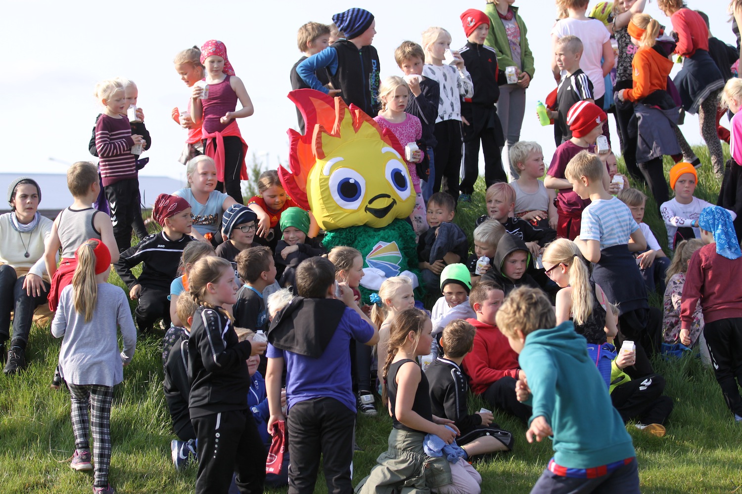 Sexhundruð glaðir nemendur í Sunnulækjarskóla tóku þátt í hlaupinu í blíðskapar veðri og allir fengu ískalda mjólk frá MS að hlaupi loknu. Í tilefni af hlaupinu kíkti Blossi, lukkudýr Smáþjóðaleikanna, í heimsókn í Sunnulækjarskóla í morgun. Hann lék á alls oddi og vakti mikla lukku þar sem hann hvatti hlauparana til dáða.