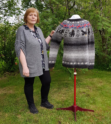 Í ár var það Kristjana K. Jónsdóttir sem hlaut útnefninguna. Kristjana, eða Sjana, eins og hún er alltaf kölluð sigraði í prjónasamkeppni um Fullveldispeysuna sem haldin var í tilefni af 100 ára afmæli fullveldisins í ár. Peysan þótti afar falleg og í anda fullveldisins og á meðfylgjandi mynd má sjá Sjönu við hlið peysunnar.
