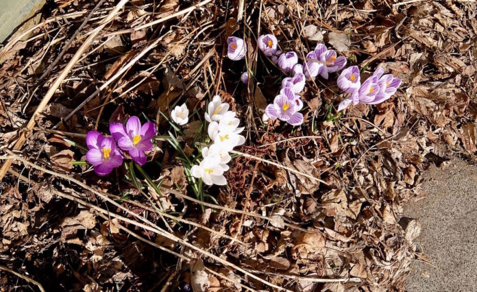 Krókusarnir eru örugg vísbending að nú styttist í sumarið en þeir eru víða farnir að kíkja upp úr moldinni á Suðurlandi.