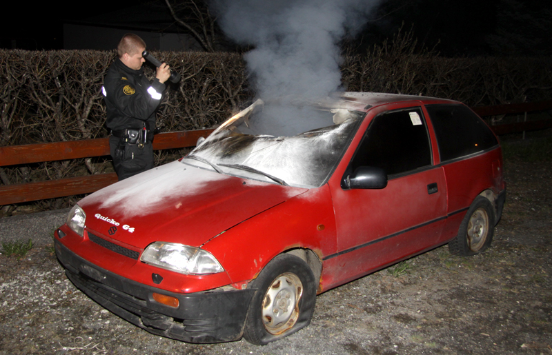 Bifreiðin var númerslaus og hafði staðið við gatnamótin um nokkurt skeið og bendir allt til þess að um íkveikju hafi verið að ræða.