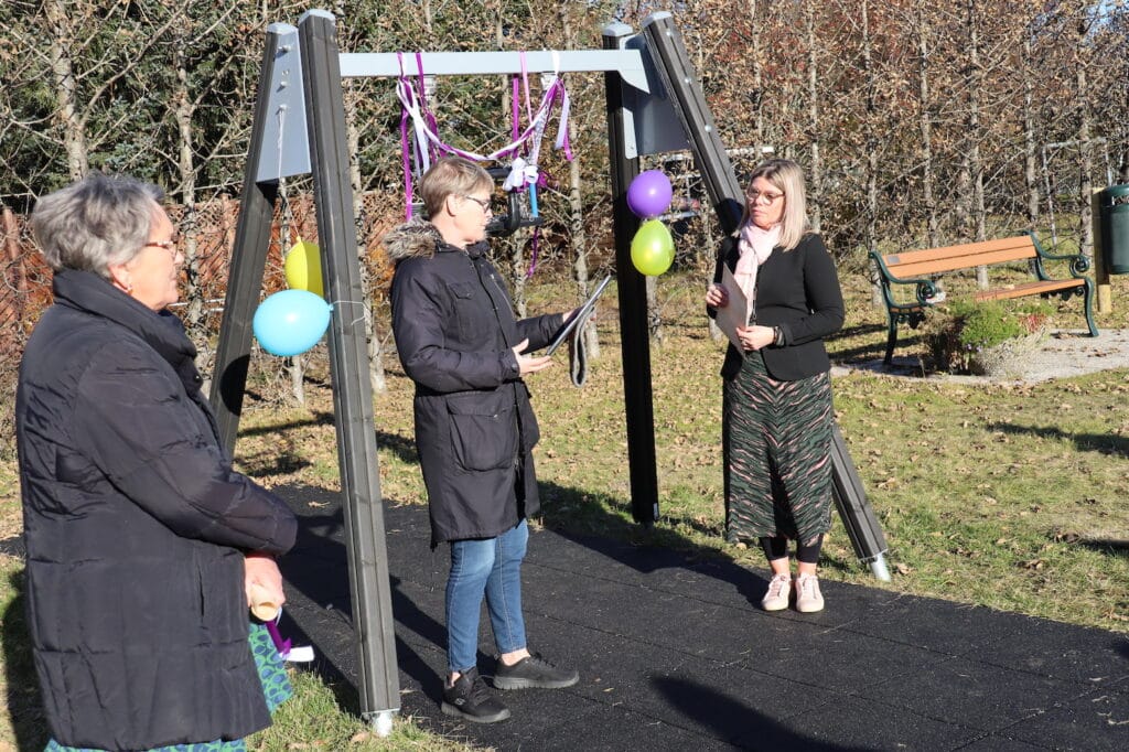 Margrét Tryggvadóttir, formaður Kvenfélagsins Einingar, færði Lilju Einarsdóttur, sveitarstjóra, formlega gjafabréf fyrir nýju leiktækjunum og las Arna Þöll Bjarnadóttir upp smá pistil frá kvenfélagskonunum um þeirra vonir og væntingar varðandi Gamla róló.