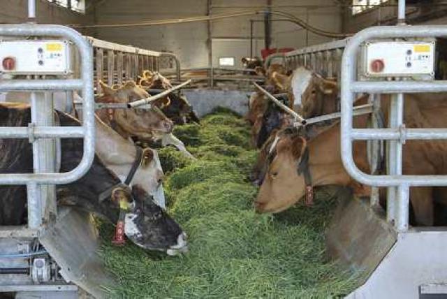 Það væsir ekki um kýrnar í hátæknifjósinu á Dalbæ 1 í Hrunamannahreppi þar sem þær gæða sér á nýgresi. Ábúendur eru hjónin Arnfríður Jóhannsdóttir og Jón Viðar Finnsson.