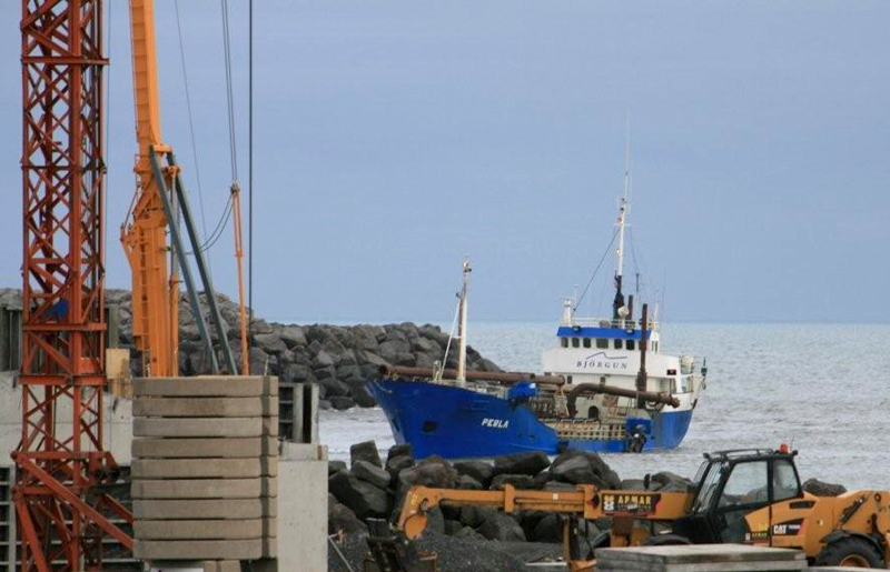 Dælubúnaður um borð í sanddæluskipinu Perlu, bilaði í gær þegar efnisfarg neðansjávar, hrundi á dælurörið og það festist í botni í Landeyjahöfn..