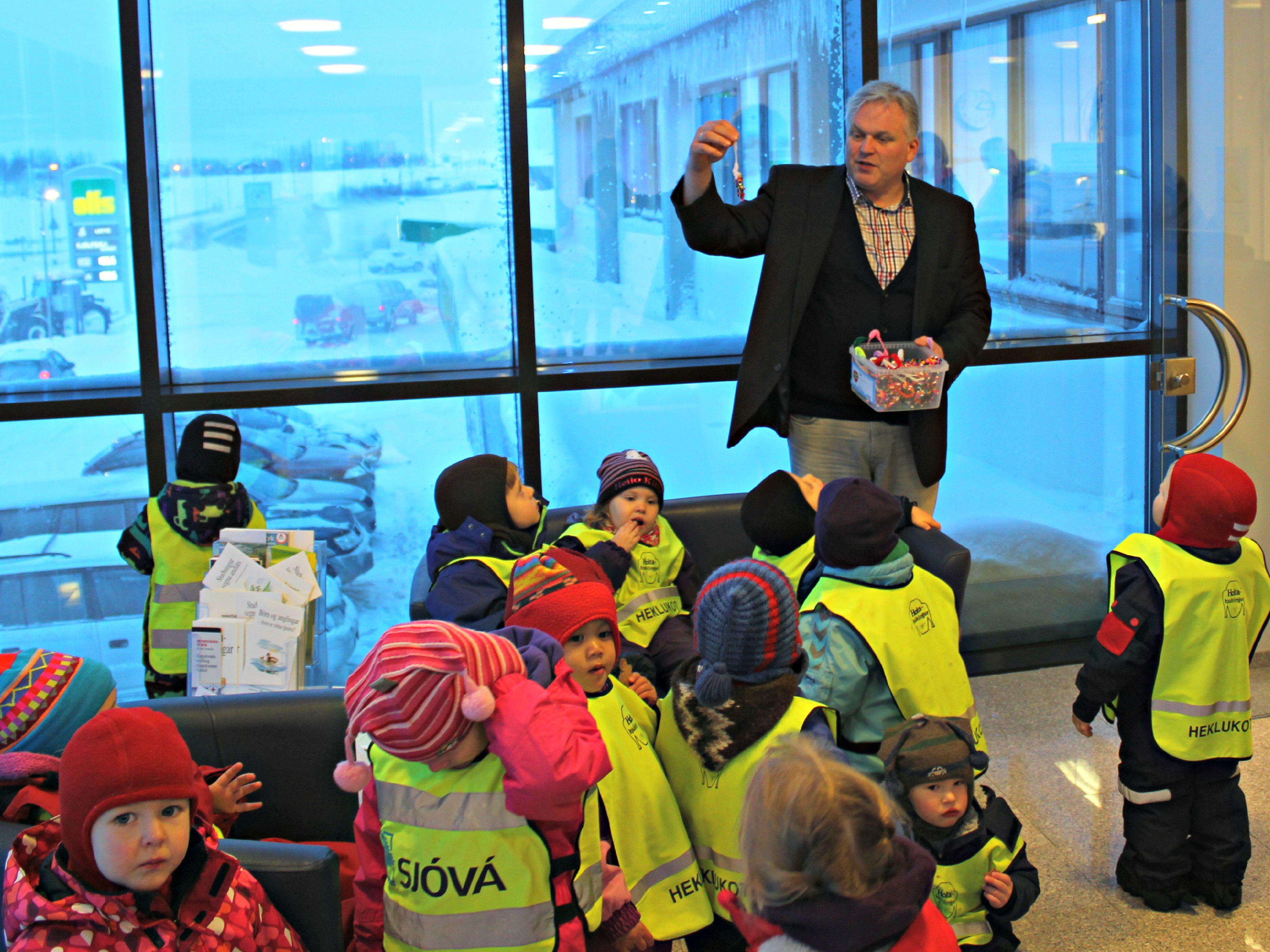 Börnin afhentu Ágústi sveitarstjóra jólaskrautið og þáðu svo piparkökur.