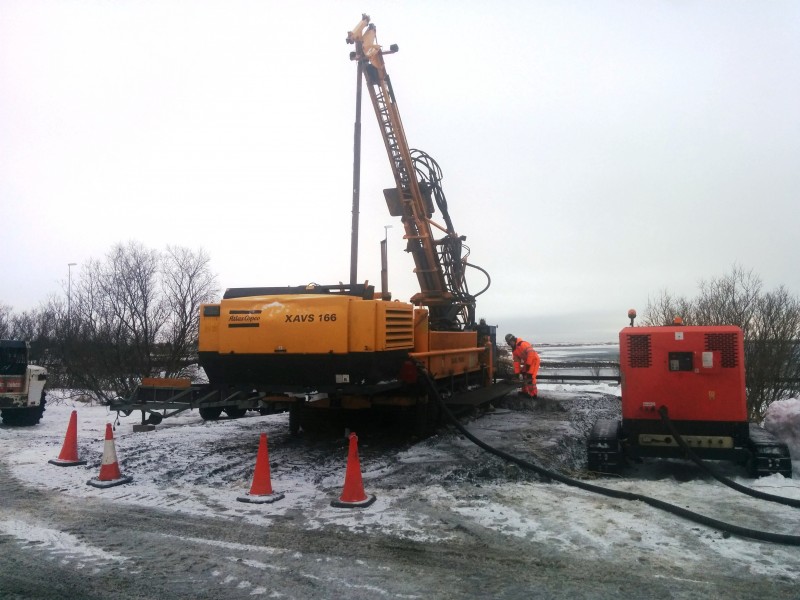 Meðfylgjandi mynd er af rannsóknarborun við Miðtún á Selfossi þar verið er að skábora í von um að finna vatnsgefandi sprungur. Niðurstöður úr þessum rannsóknum munu síðan liggja fyrir á næstu vikum en Íslenskar Orkurannsóknir(ISOR) eru ráðgjafar Selfossveitna varðandi staðsetningu á borholum og úrvinnslu.
