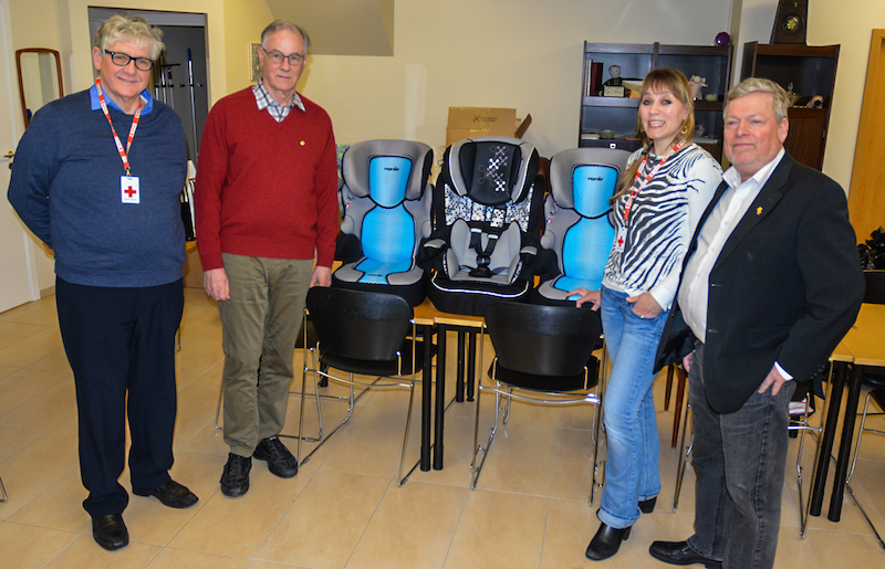 Á dögunum afhenti Lionsklúbbur Hveragerðisdeild Rauða Krossins í Hveragerði þrjá nýja og vandaða barnabílstóla með aðstoð verslunar Byko á Selfossi.