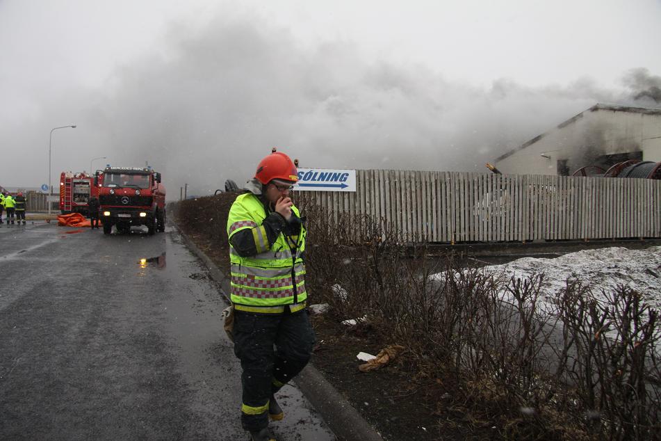 Eldurinn og hitinn úr skemmunni í SET lagðist yfir næstu byggingu verksmiðjunnar sem geymir fljótandi gas og verðmætar vélasamstæður.