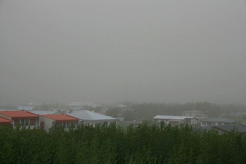 Svifryksmengun á Hvolsvelli var 75 umg3 í hádeginu og hafði farið hratt vaxandi í morgun.