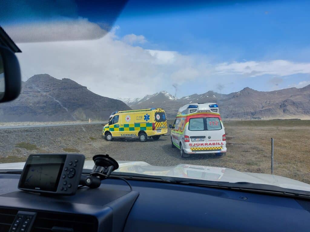 Björgunarsveitin Kári í Öræfum, og Björgunarfélag Hornafjarðar komu að aðgerðum í morgun, þar sem þjóðveginum var lokað frá Skaftafelli að vestan og Jökulsárlóni að austan, meðan mesta hvassviðrið gekk yfir. Um hádegið var vind tekin að lægja.