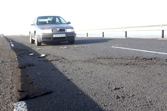 Vegir eru þó víðast auðir á Suðurlandi. Mikið sandfok er við Óseyrarbrú.