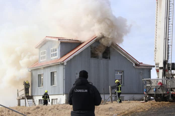 „Það var talsverður eldur á efri hæðinni, mikill reykur og hiti þegar við komum að húsinu. Við fengum fljótlega þá vitneskju um að húsið væri mjög líklega mannlaust. Við sendum menn inn í húsið til að byrja með en svo féll gólfið á efri hæðinni og þá var ekki óhætt að senda menn inn í húsið,“ sagði Haukur Grönli, varaslökkviliðsstjóri, í samtali við sunnlenska.is á vettvangi.