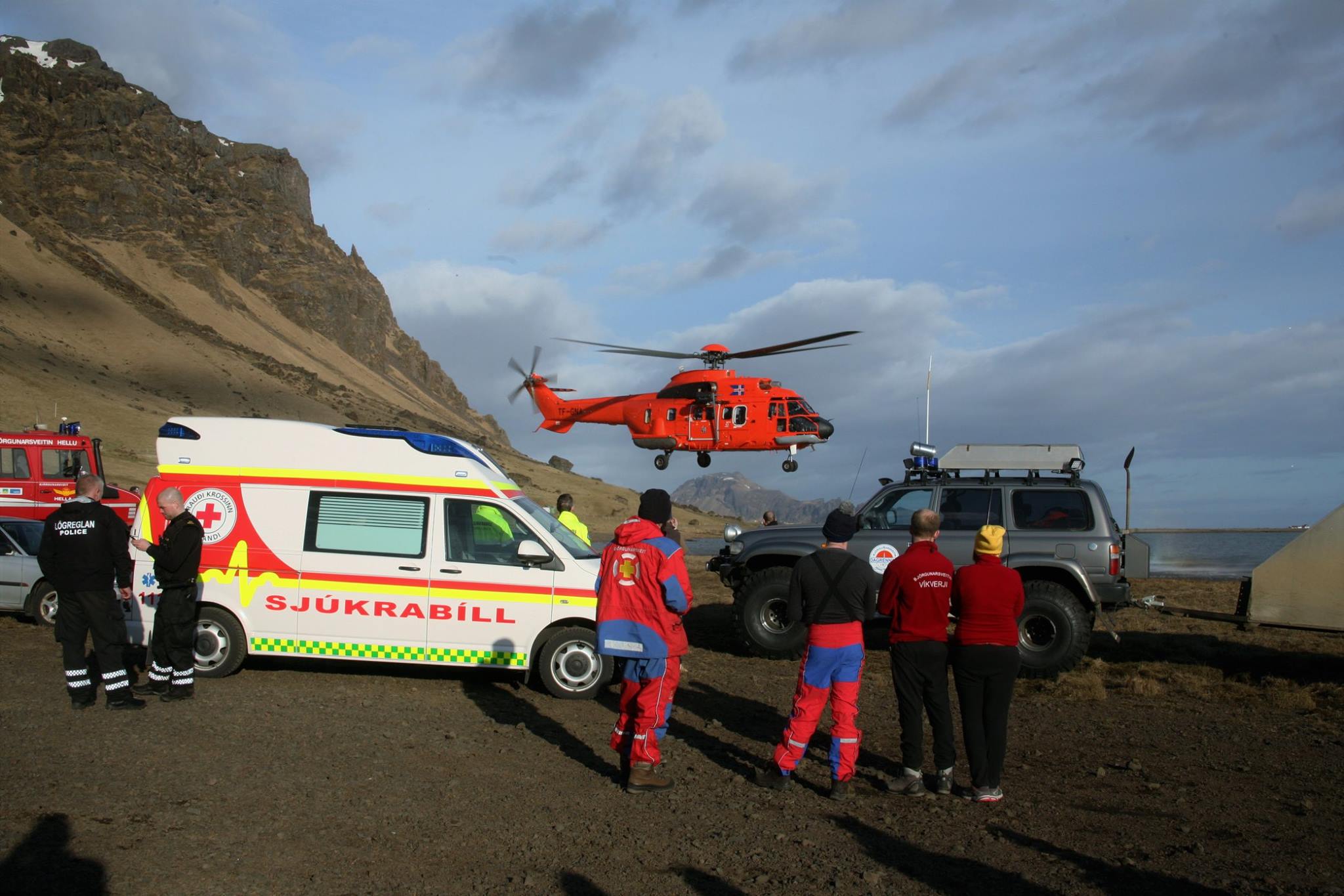 Þá voru fjórir ræðarar fluttir á slysadeild eftir að hafa lent í Holtsós undir Eyjafjöllum. Fjórmenningarnir voru allir í flotvestum og var bjargað í land eftir að hafa verið 40 mínútur í vatninu. Allir voru nokkuð vel á sig komnir miðað við aðstæður en voru fluttir á sjúkrahús til skoðunar.