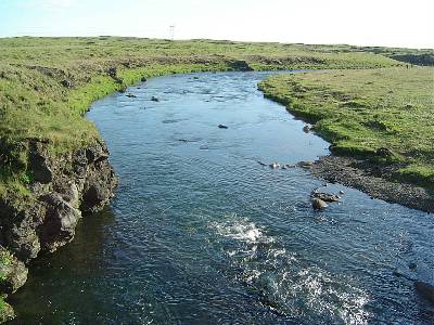 Oddur Bjarnason, sem er í stjórn veiðifélags Kálfár, segir að vatnsstaðan hafi verið lág undanfarin þurrkasumur en sáralítið væri í ánni núna.