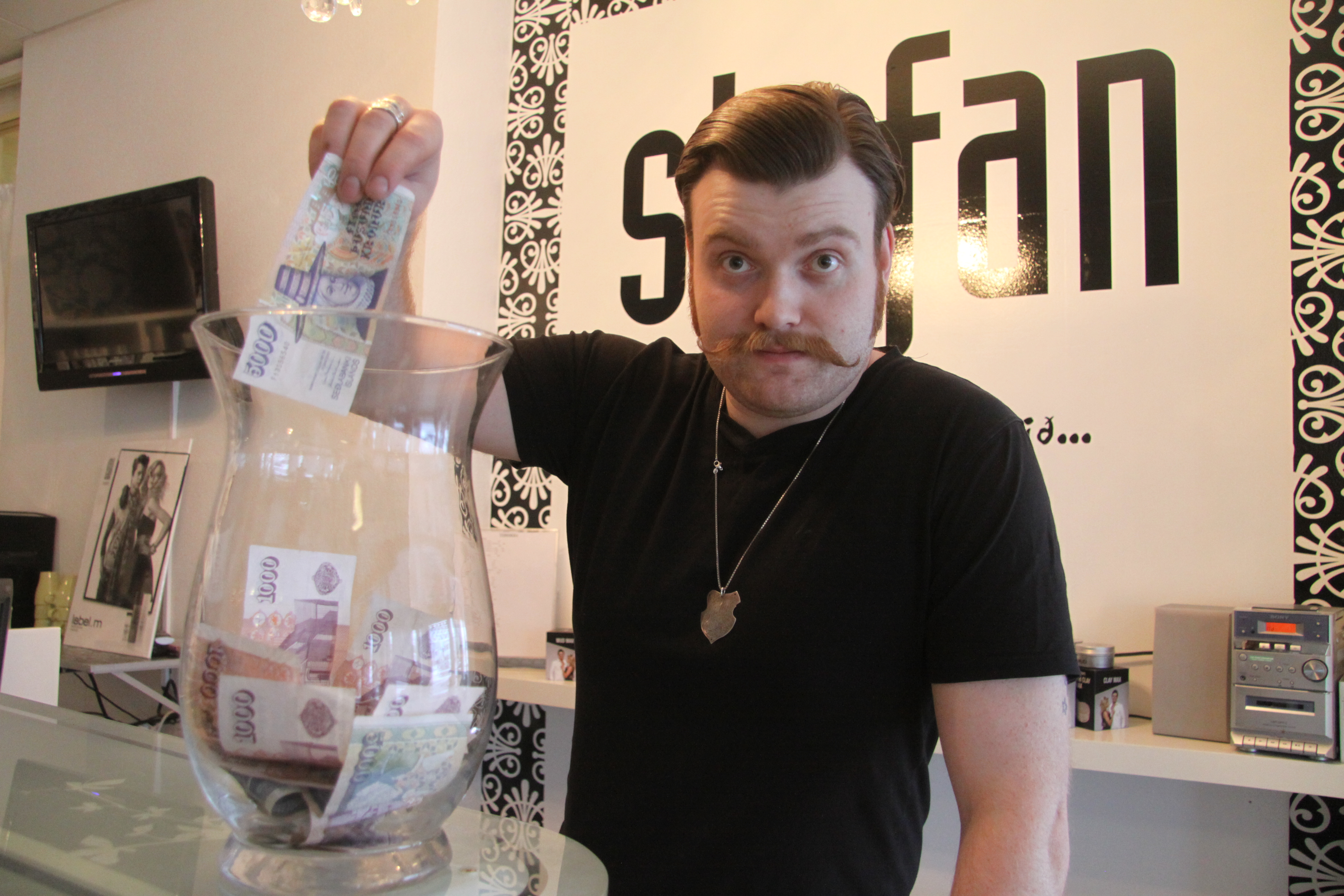 Gústi á Stofunni lætur ekki deigan síga því auk þess að skarta vígalegri mottu býður hann upp á mottusnyrtingu. Greiðslan fyrir snyrtinguna er í formi frjálsra framlaga að lágmarki 500 krónur.