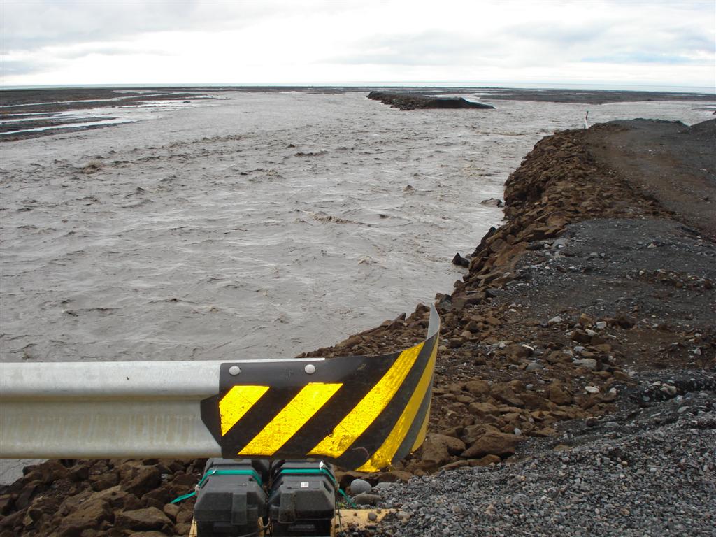Múlakvísl rennur núna um mun meira svæði en áður. Eftir að varnargarðurinn brast rennur áin til vesturs í átt að veginum eins og hún gerði áður en brúin eyðilagðist í sumar.