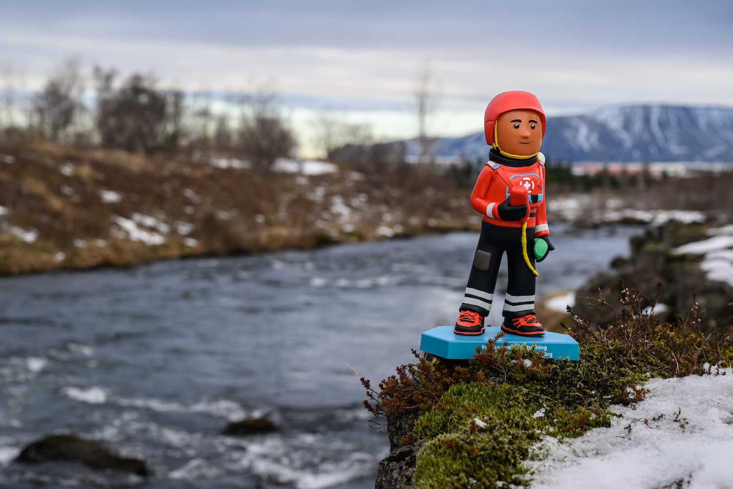Að þessu sinni er Neyðarkallinn í hlutverki straumvatnsbjörgunarmanns og þannig heiðrar Landsbjörg minningu góðs félaga, Sigurðar Kristófers McQuillan Óskarssonar, sem lést í hörmulegu slysi við æfingar í Tungufljóti, fyrir rétt um ári síðan. Það var gert í góðu samráði við fjölskyldu Sigurðar og björgunarsveitina Kyndil, sem hann veitti formennsku.