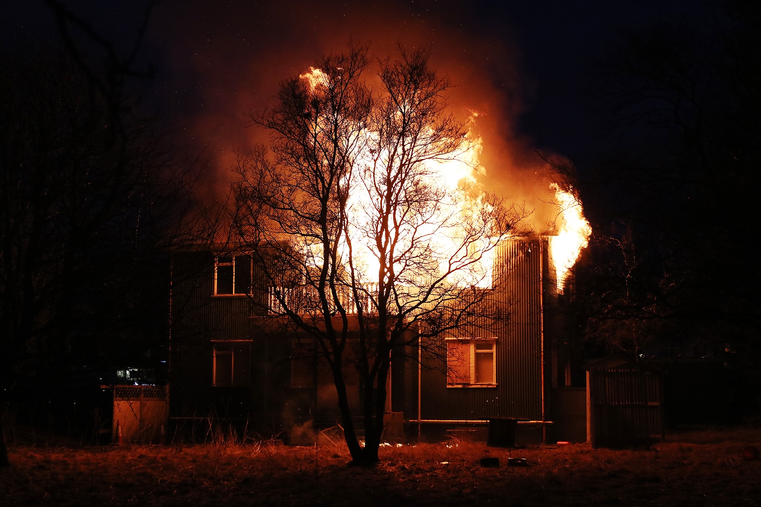 Tilkynnt var um eld í húsinu á áttunda tímanum á laugardagskvöld og var efri hæð hússins alelda þegar viðbragðsaðila bar að garði. Slökkvistarf tók nokkurn tíma þar sem eldsmatur var mikill.