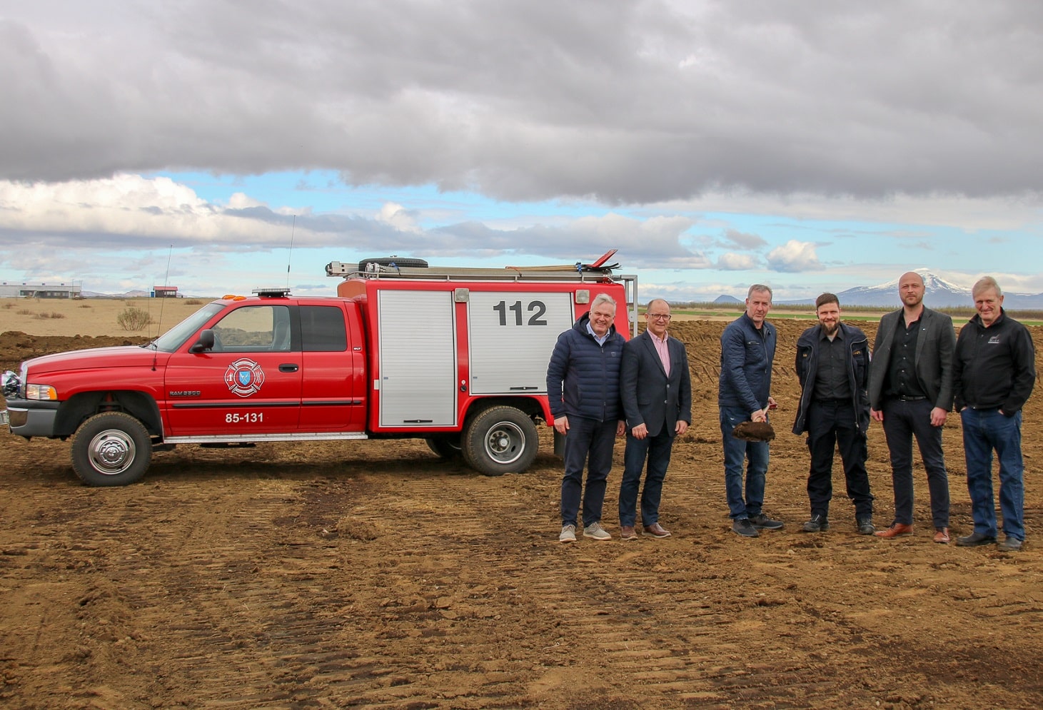 Viðstaddir skóflustunguna voru sveitarstjórar og oddvitar í Rangárvallasýslu ásamt slökkviliðsstjóra og stjórnarmönnum Brunavarna Rangárvallssýslu.
