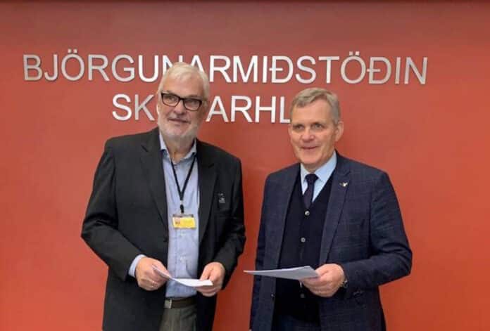 Jón Gunnarsson, dómsmálaráðherra og Þórhallur Ólafsson, forstjóri Neyðarlínunnar undirrituðu samningana á 112-deginum, 11. febrúar.
