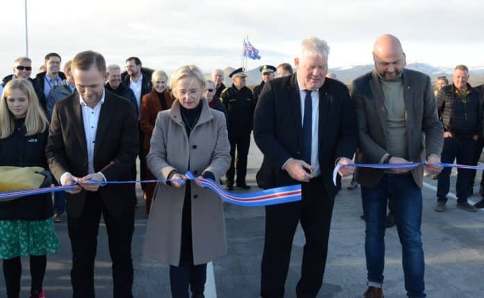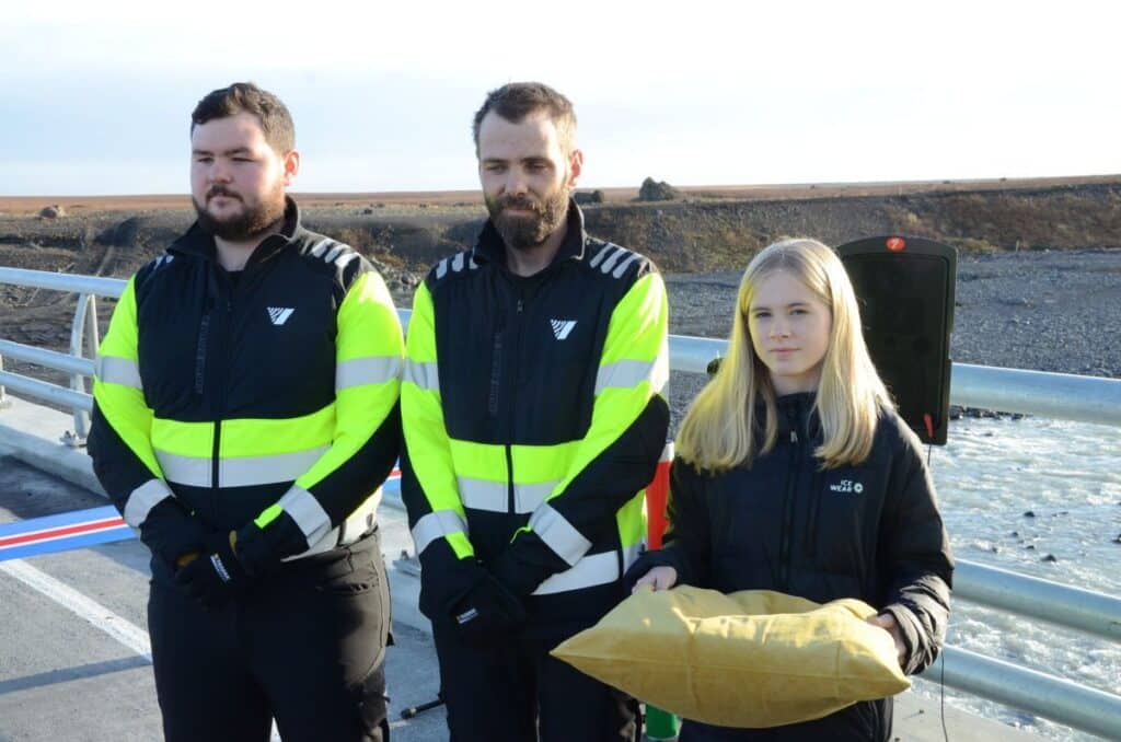 Ný brú yfir Jökulsá á Sólheimasandi var vígð síðastliðinn föstudag þegar Sigurður Ingi Jóhannsson innviðaráðherra, Bergþóra Þorkelsdóttir forstjóri Vegagerðarinnar, Einar Freyr Elínarson, sveitarstjóri Mýrdalshrepps og Anton Kári Halldórsson sveitarstjóri Rangárþings eystra klipptu á borða í blíðskaparveðri á miðri brúnni.