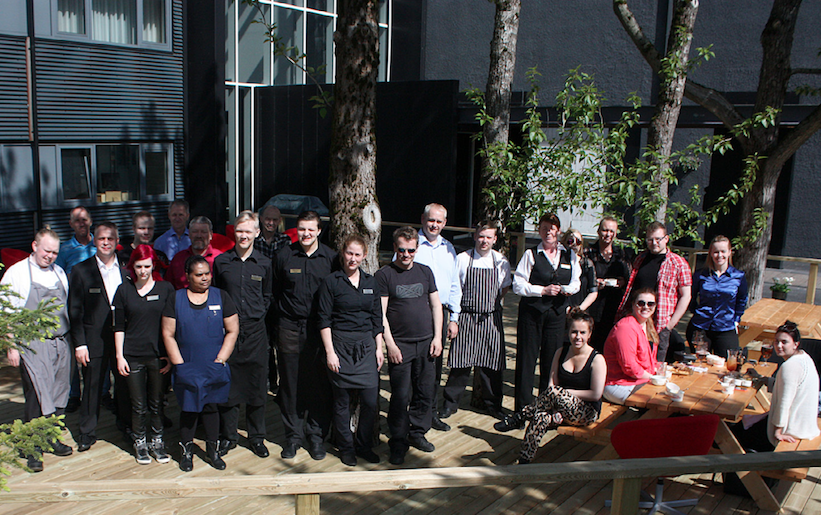 „Við vorum að taka í notkun nýjan og glæsilegan tæplega 200 fermetra sólpall við anddyri hótelsins þar sem gestir okkar og aðrir geta sleikt sólina og notið lífsins og um leið keypt veitingar af okkur.