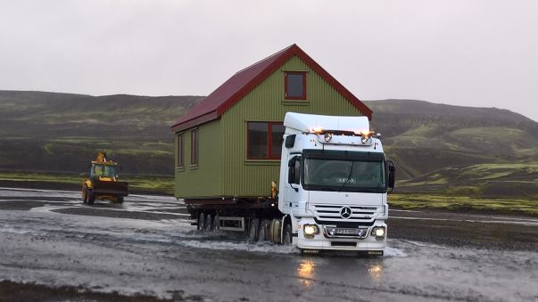 Daði segir að veðurguðirnir hafi veitt blessun sína á flutninginn um síðustu helgi því eins og sést á meðfylgjandi myndum var allt marautt á svæðinu og lítið mál að flytja skálann og koma honum fyrir á sínum stað. Síðan þá hefur hins vegar snjóað mikið á Fjallabaki.